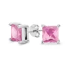 These sterling silver studs hold a 7mm, square, simulated pink tourmaline, princess cut CZ. They make the perfect gift for October babies, and people with pierced ears and chic style.