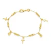 Give your heart to lucky lady in your life with this ethereal charm bracelet. Five, delicate heart charms dangle gracefully from a radiant, 18K gold plated brass, Figaro chain.