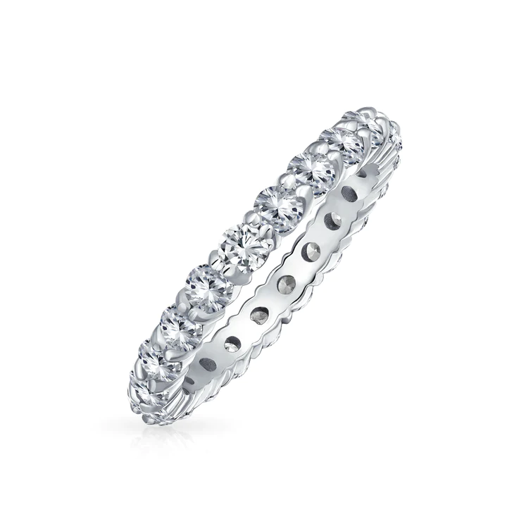 Treat your beloved to this stunning, eternity band ring. Featuring a sparkling, two tone deign with lustrous cz’s against clear cz’s.