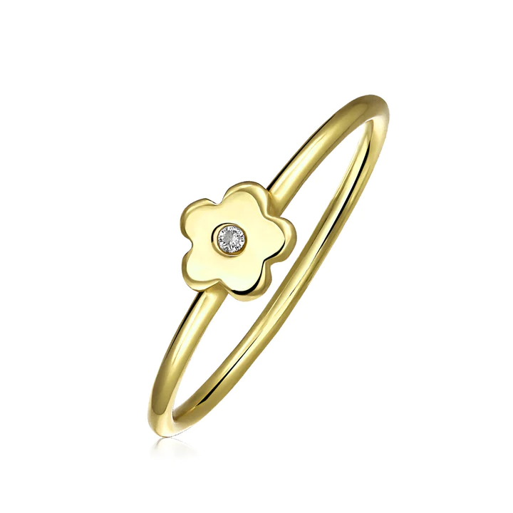 This 1mm, modern Cubic Zirconia Flower ring stands out, with gold plated silver. This is the perfect piece of delicate jewelry wear to impress as you go about your day in sophisticated style.