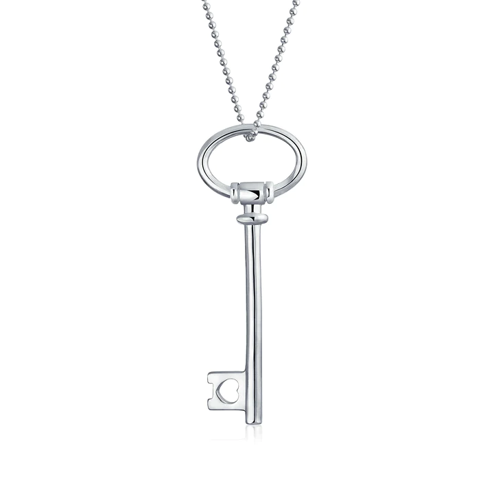 The key to a good outfit is choosing the right sterling silver jewelry. It’s never been easier to unlock a better wardrobe with this 2.4in cut out style, oval skeleton key necklace. On a 24in chain, this polished necklace is a great gift.