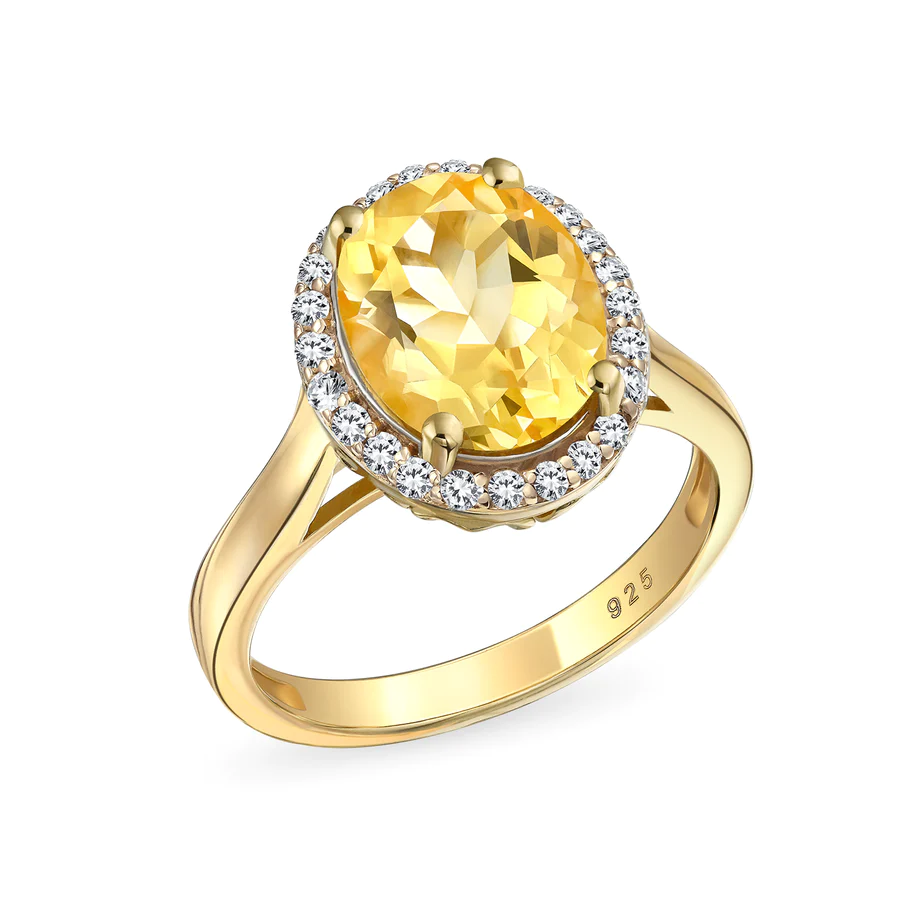 Elevate your style with the timeless elegance with this classic oval-shaped Citrine halo ring November birthstone. Crafted in Yellow Gold Vermeil sterling silver, this ring radiates an understated and opulent allure.