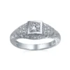 Inspire your beloved to fall more deeply in love with you with this enchanting, vintage style, wedding ring set. Includes engagement ring with darling, delicate princess cut, surrounded by cz’s.