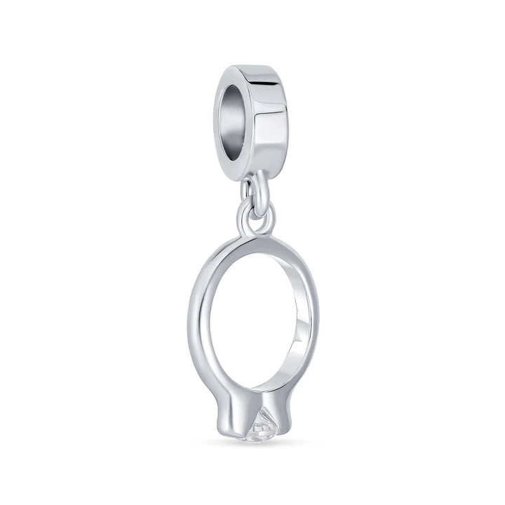 Remember the ‘I do’ with darling dangling 5mm unthreaded core, engagement ring charm made of sterling silver and holding a CZ stone that shines as bright as your love.
