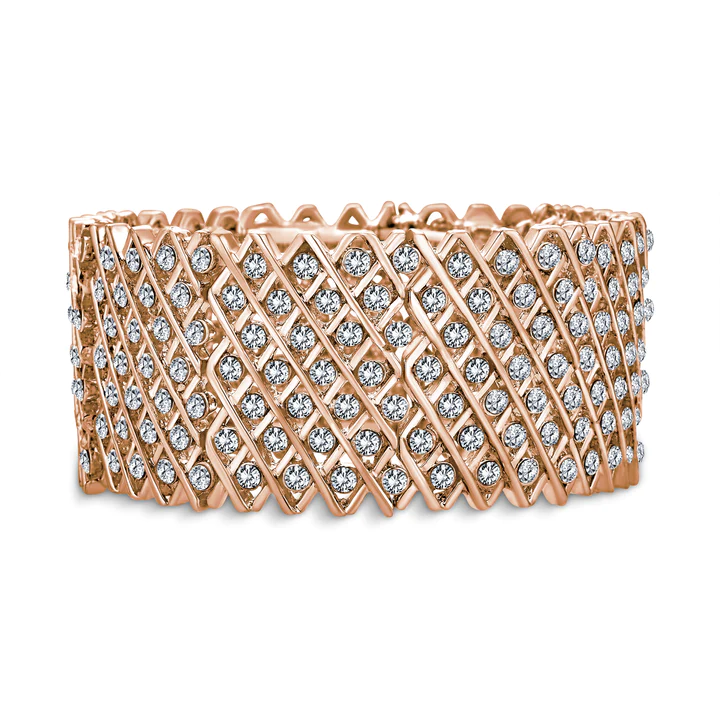 An exquisite stretch bracelet to elevate your bridal or formal ensemble, this sublime cuff features multi rows of crystal accents, boasting a timeless, XO motif.